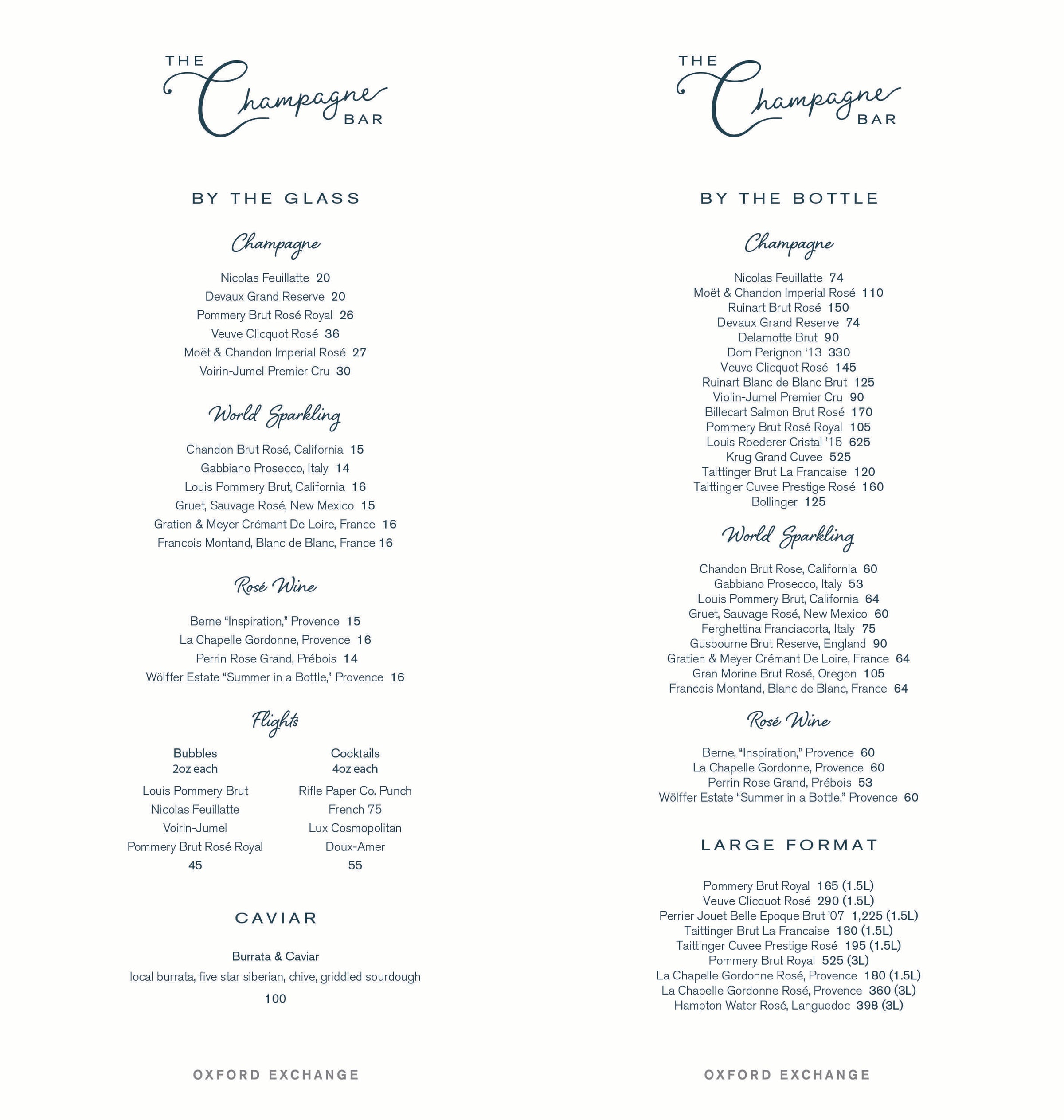 The Champagne Bar - Wine Menu