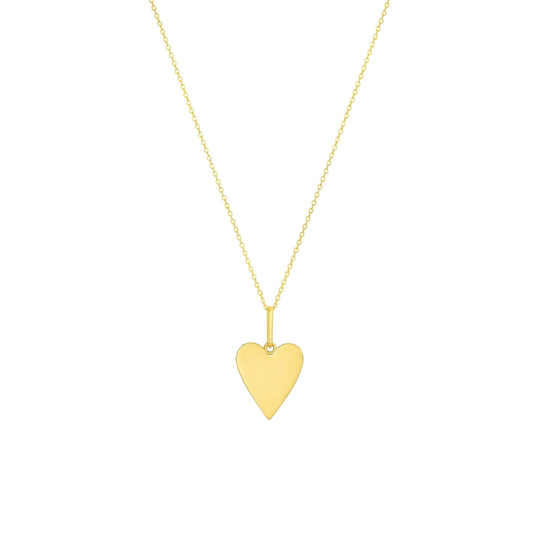 14k gold or rhodium plated heart charm on 18" cable chain w. 2" extender.