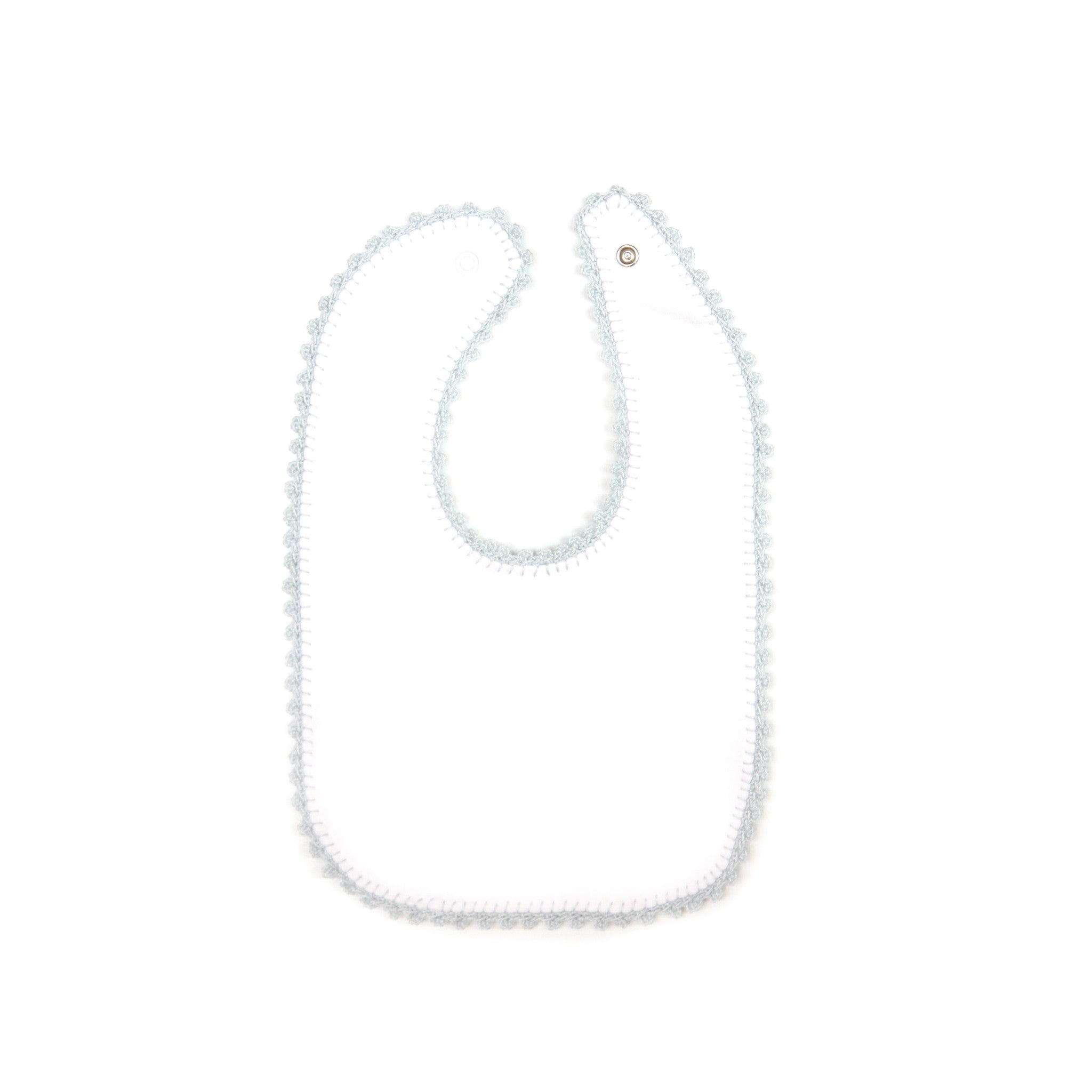 In 2000, Leda Jackson officially opened the doors of Pixie Lily proper and began creating layettes - from bonnets to blankets – for today’s babies that mirror the quality and simplicity of her own family heirlooms. A snap enclosure bib with blue crochet trim is the best way to keep your Pixie Lilies fresh and white.
