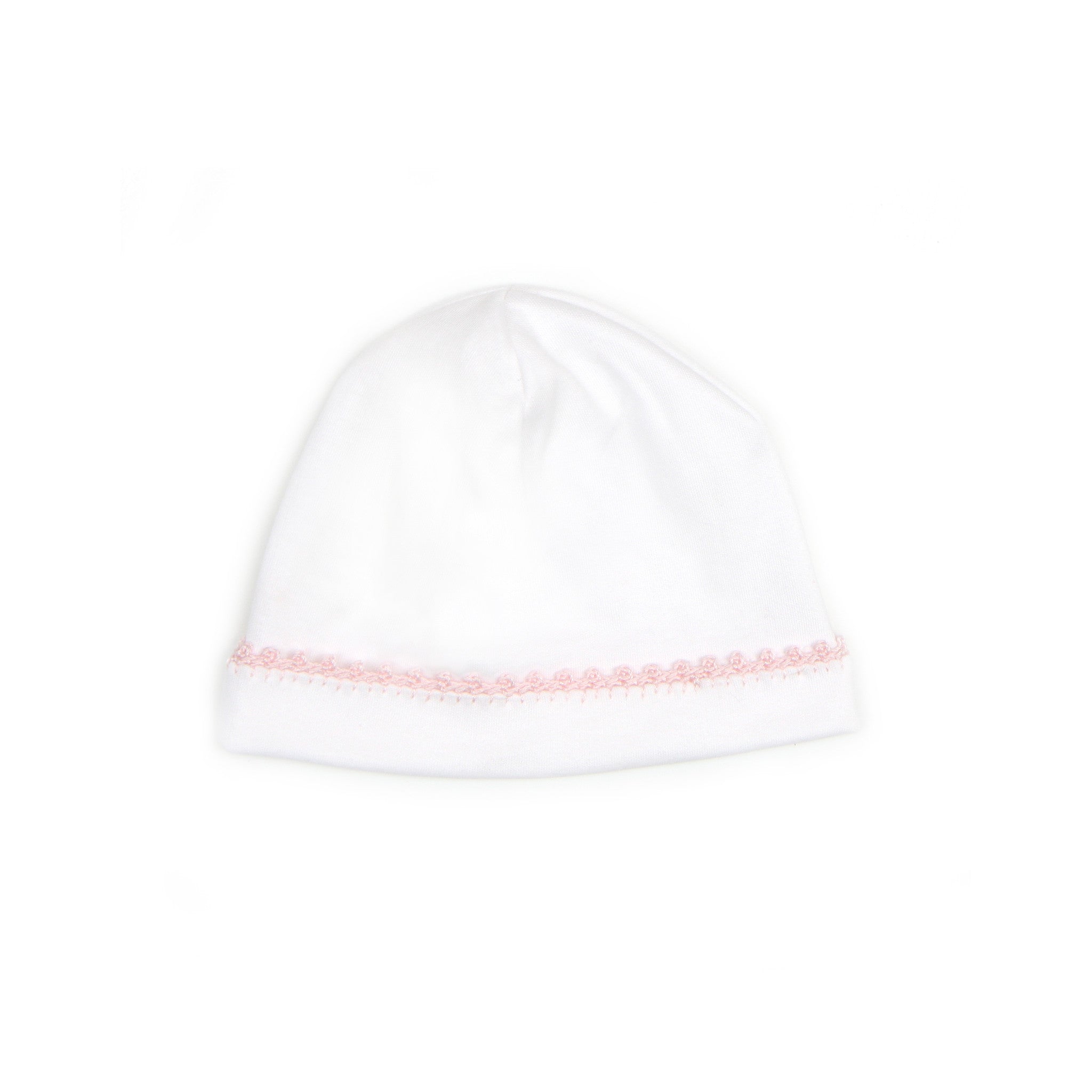 In 2000, Leda Jackson officially opened the doors of Pixie Lily proper and began creating layettes - from bonnets to blankets – for today’s babies that mirror the quality and simplicity of her own family heirlooms. This beanie style cap is edged in crochet tatting at the brim.