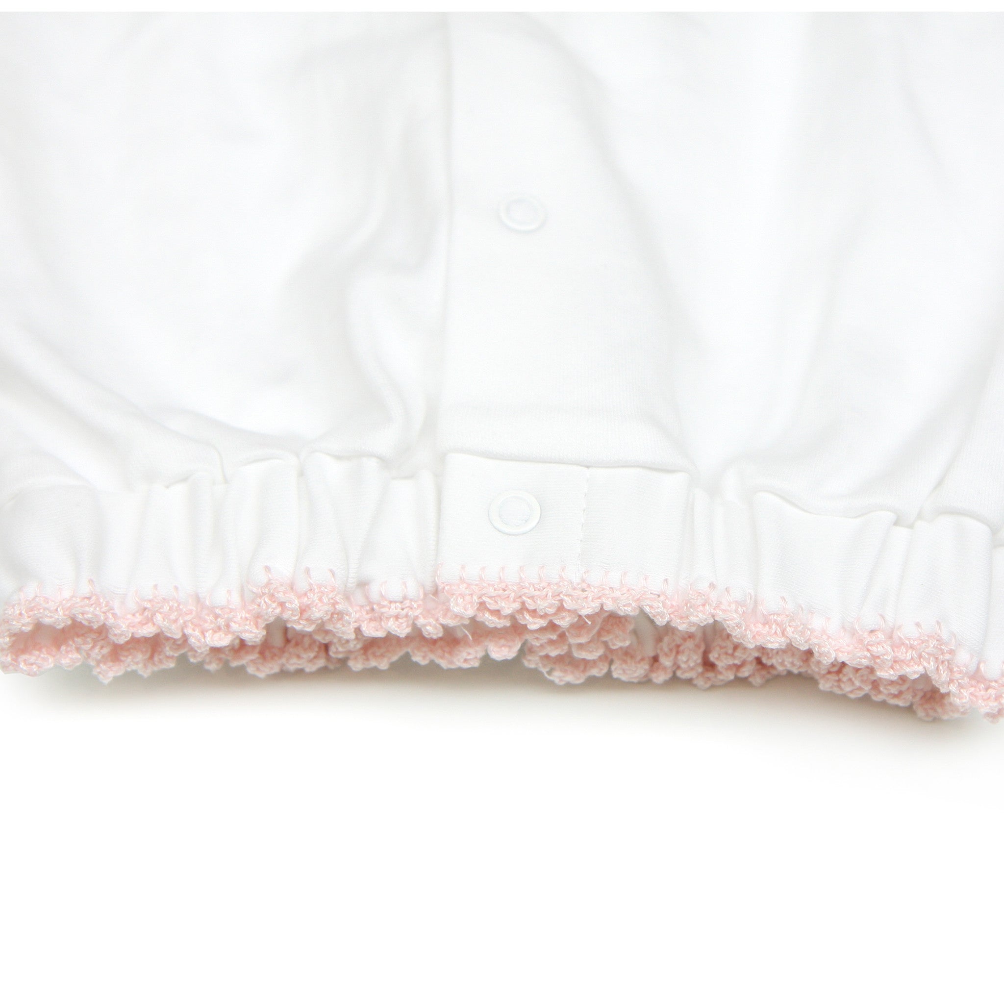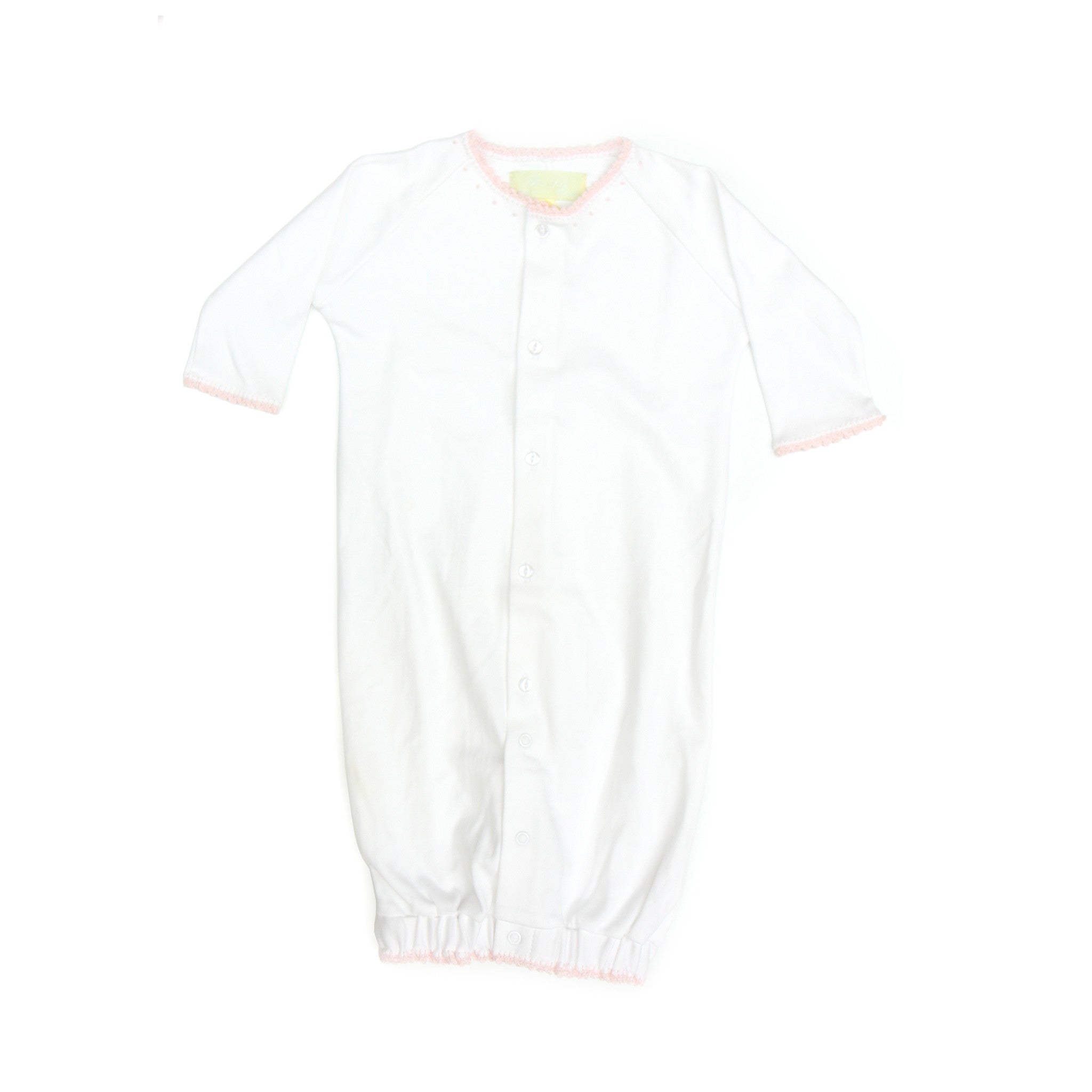 In 2000, Leda Jackson officially opened the doors of Pixie Lily proper and began creating layettes - from bonnets to blankets – for today’s babies that mirror the quality and simplicity of her own family heirlooms. This gown converts to a romper with the change of a few snaps. It has buttons down the top half of the gown and snaps at the bottom half for convenience and features signature embroidery and crochet tatting.