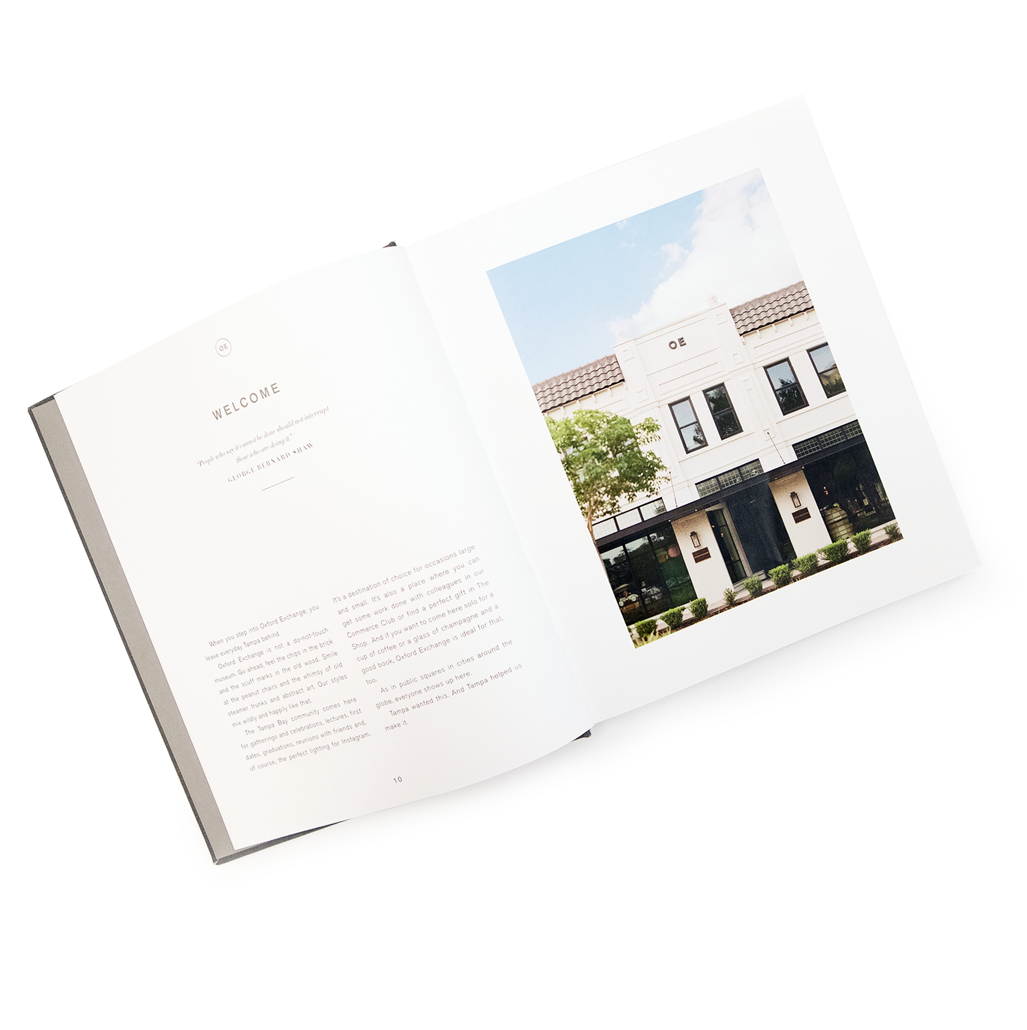 In celebration of over a decade of being a part of the fabric of Tampa Bay, Oxford Exchange has created our very own coffee table book, featuring all aspects of the style, food, culture, and community that OE has to offer. Includes 8 original recipes from The Champagne Bar and The Restaurant. Bring home a piece of Oxford Exchange.