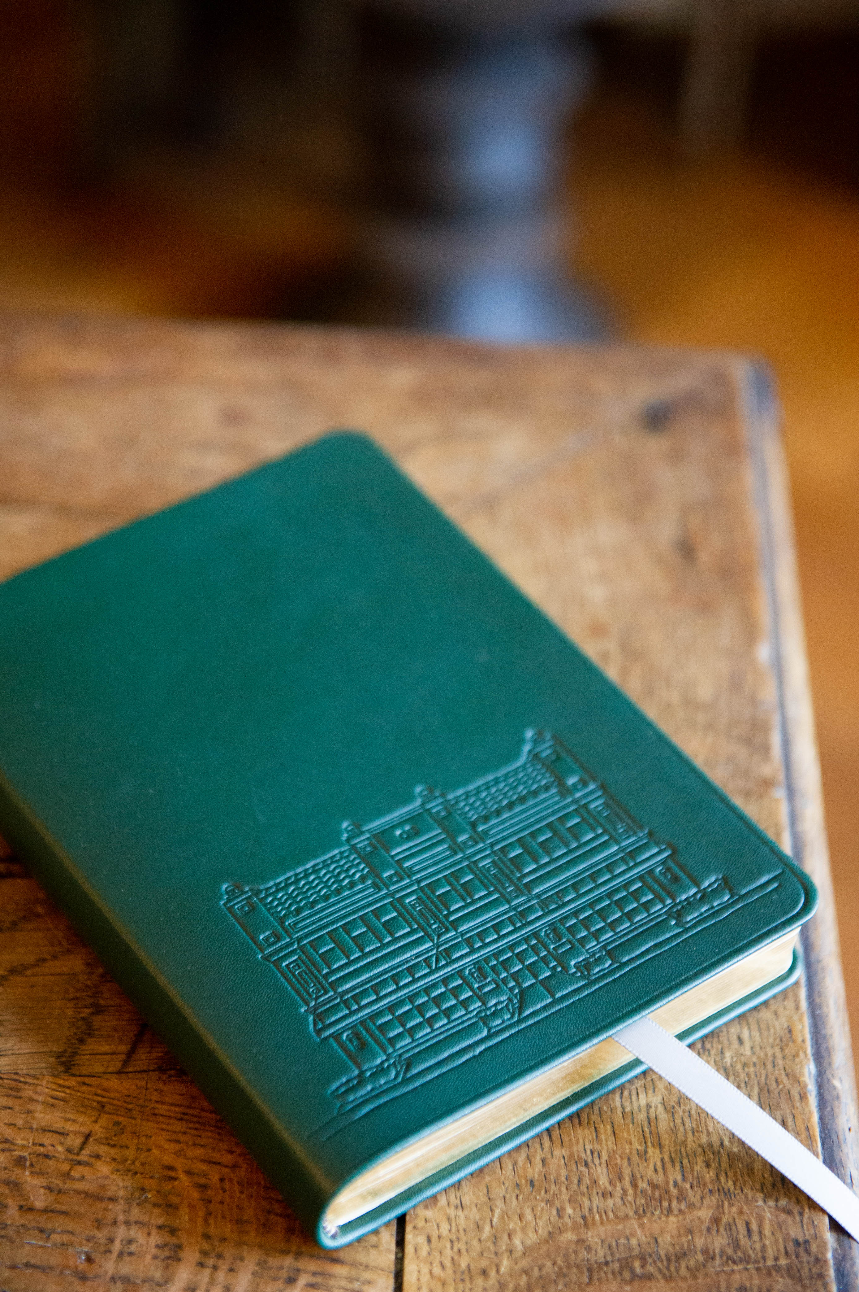 Bring along the spirit of Oxford Exchange on your wistful adventures with this gorgeous green leather travel journal, made exclusively for Oxford Exchange. Features: A debossed image of the Oxford Exchange building, a green leather cover that mimics the green leather-paneled ceiling of the The Bookstore, and a satin gray ribbon page marker.